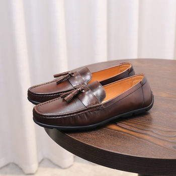 Colección de verano Mocasines de hombre directos de fábrica de Guangzhou Zapatos sin cordones de cuero sólido informal con diseño de frijol con borlas