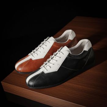 Nuevo Retro británico alemán cuero de vaca entrenamiento deportes zapatos casuales negro blanco contraste colores cordones moda tendencia todo-fósforo