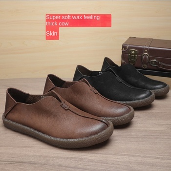 Zapatos informales de cuero genuino para hombre de otoño, zapatos perezosos sin cordones de carne con suela suave y cómoda para tendencia de moda de comercio exterior