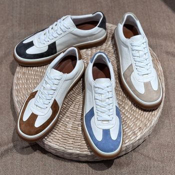 2025 nam thoáng khí Giày thể thao giản dị người Anh da lộn màu trắng da ren-up hàng ngày mặc mềm thấp cắt mùa hè đi bộ Giày