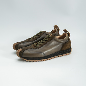 Muyun mùa xuân mùa hè Retro Giày lấy cảm hứng từ Forrest Gump handmade Ý nghề thủ công mềm da bò châu Âu ren-up xu hướng thời trang